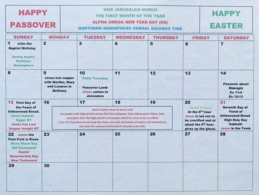 The first month of the New Jerusalem Calendar begins with powerful energy, as Alpha Omega New Year Day opens a season of renewal, light, and hope. Right away, the story of Passover and the Resurrection comes alive—John the Baptist’s birth, Jesus’ entry into Jerusalem, the Last Supper, the trial, crucifixion, and the ultimate victory of the Resurrection all unfold within these weeks. Each day carries deep meaning, woven together with the Feast of Unleavened Bread and Israel’s exodus from Egypt, linking the Old Testament and the New Testament into one continuous testimony of God’s plan. It is a month of liberation, sacrifice, and new life—a divine alignment where remembrance and celebration meet, making the beginning of the year rich with purpose and spiritual awakening.